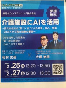 東京ビッグサイト西展示棟にて開催されるCare TEX東京’26にて、大垣施設長が登壇いたします。